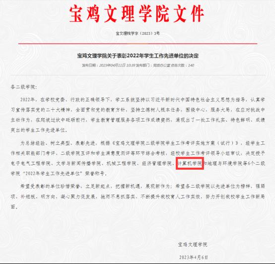 根据《威廉希尔williamhill二级公司员工工作考评实施方案(实行)》及《威廉希尔williamhill二级公司员工工作考评指标体系》,公司积极对员工日常教育管理服务、员工党建、宣传教育、共青团工作、服务教学、就业创业指导服务、安全稳定、教室管理等8个考评项目进行自评,员工满意度测评及公司员工工作考评会评审,最终喜获2022年员工工作先进单位荣誉称号。