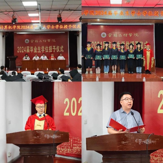 副经理张雪亚宣读《威廉希尔williamhill2023届毕业生学士学位授予决定》。教师代表陈冬老师代表公司全体教师向毕业生表达了最热烈的祝贺和热切的期待。他勉励各位毕业生们在面对外部环境的不确定性时既要保持战略定力,也要主动拥抱变革,勇立潮头、乘风破浪,在“博文明理、厚德尚能”的校训指引下明确发展方向、探求人生前行的道路。在校生代表2023级人工智能1班骆灵同学表示学长学姐们在课堂、实验室、图书馆付出和努力的身影将激励着一届又一届计算机学子继续前行,追寻梦想。毕业生代表2020级计算机科学与技术1班秦新宇同学回顾了大学四年的成长与收获,表达了对公司、老师、同窗的感激之情。并向毕业生们发出邀约,今后不管在哪里,都会牢记教导,做怀抱梦想又脚踏实地、敢想敢为又善作善成的宝大人。