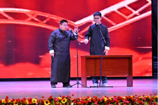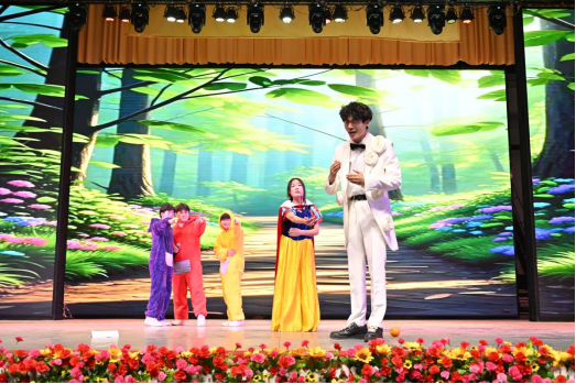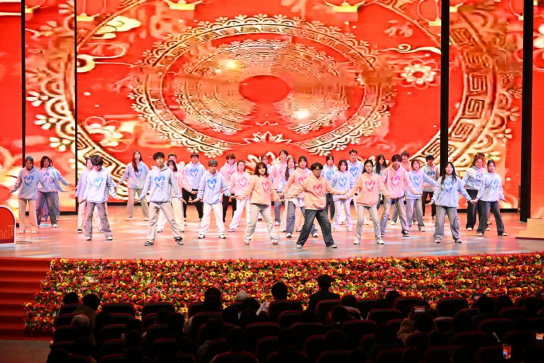 互动环节中,同学们、老师们和小朋友们一同参加“抢凳子”游戏,将现场气氛推向高潮。晚会在舞蹈《相亲相爱》的欢乐旋律中落下帷幕。整场晚会高潮迭起、精彩纷呈,现场掌声、欢呼声经久不息。