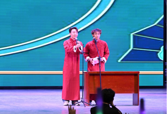 开场舞《Fighting》以灵动舞姿、富有感染力的节奏与炫酷舞步瞬间点燃了现场气氛,拉开了晚会序幕;歌曲《我们俩》《找自己》《我们》表达了员工们对青春岁月的美好憧憬与真挚情感;朗诵合唱《觉醒年代》唱响了新时代青年的爱国情怀和民族自豪感;舞蹈《大河之子》以黄河为背景,通过舞者们的深情演绎,展现了中华母亲河的壮丽与豪迈,弘扬了伟大的民族精神;相声《我要恋爱》《时尚老头》以诙谐幽默的语言表达了老员工对生活的乐观态度;乐队《海阔天空》以激昂的旋律唤起了大家对自由与梦想的执着追求;歌曲《等待》以悠扬婉转的曲调和专业演唱水平倾诉着无尽的期盼;小品《白雪公主》凭借夸张搞笑的表演和巧妙的境界设置,演绎出不一样的童话世界;创意舞台剧《诗画中国》恰似徐徐展开的画卷,描绘出如诗意境,把对中华传统文化的热爱之情展现得酣畅淋漓;舞蹈《Fire》《第一天》展现了当代老员工的青春活力与自信风采,唱出了同学们对梦想的执着追求。