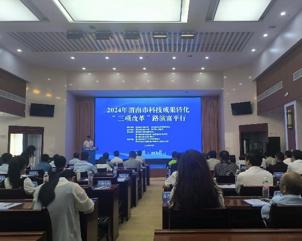 6月28日下午,全省高校院所“三项改革”科技成果转化项目集中路演活动在渭南市富平县成功举办。公司教师樊攀携“现代苹果园智能移动苹果采摘机器人”成果参与了此次活动。