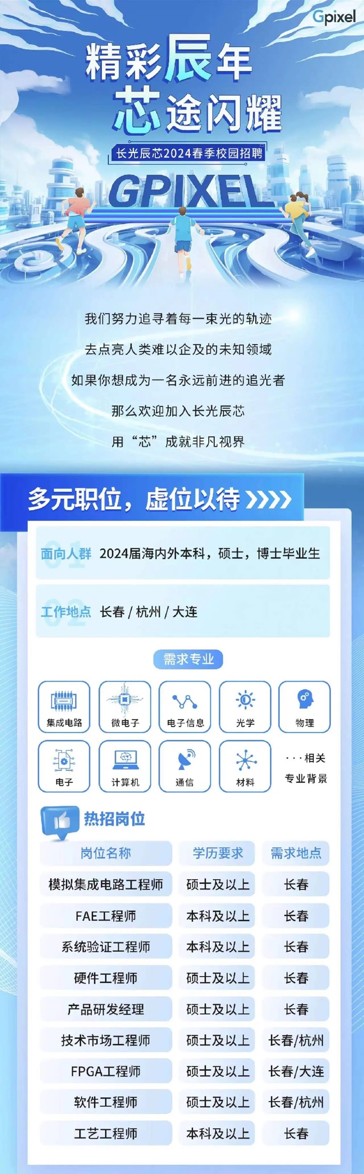 【校园招聘】长春长光辰芯光电公司春季校招!