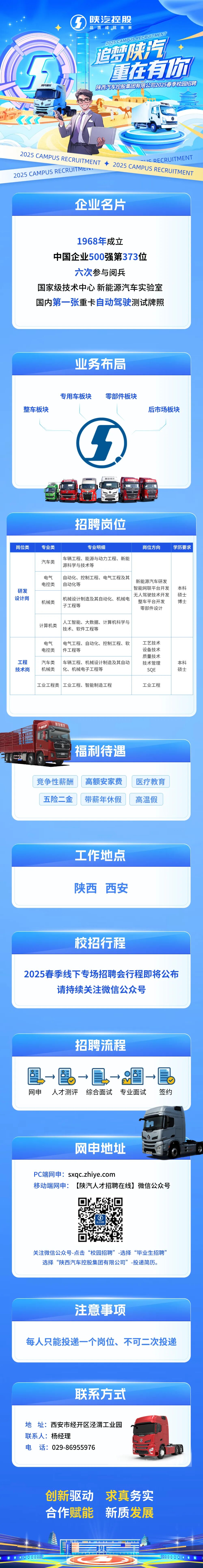 追梦陕汽 重在有你丨陕汽控股2025春季校园招聘正式启动!